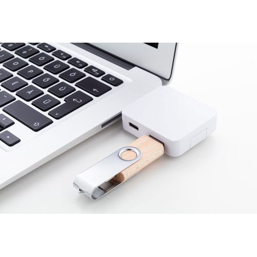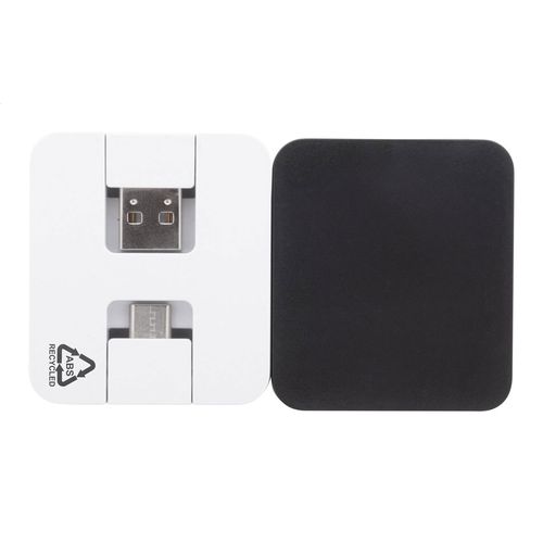 Recycled ABS plastic USB hub with 2 USB and 2 USB-C ports. With foldable USB and USB-C connectors. USB 2.0.