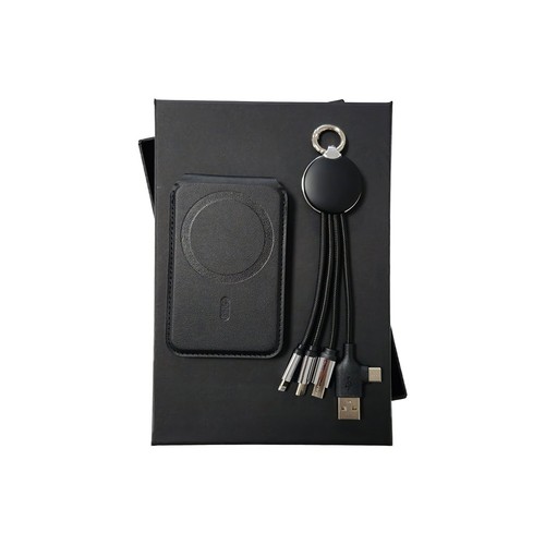 A sleek gift set featuring phone-focused accessories: a phone wallet for carrying cards and cash,and a multi-charging cable for powering multiple devices quickly and safely. Both items are used daily—at home,in the office,or on the go—keeping your logo constantly visible. The products and box lid can be fully customized with your company branding,making it a high-impact promotional gift.