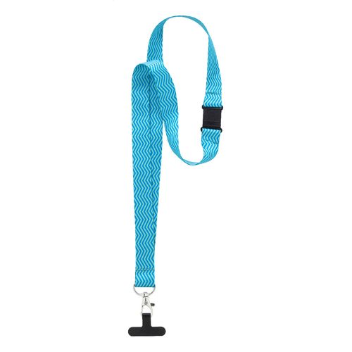 Custom made, RPET mobile holder lanyard with metal carabiner, safety buckle and phone insert in tearproof paper. With sublimation printed graphics on both sides. MOQ: 100 pcs.