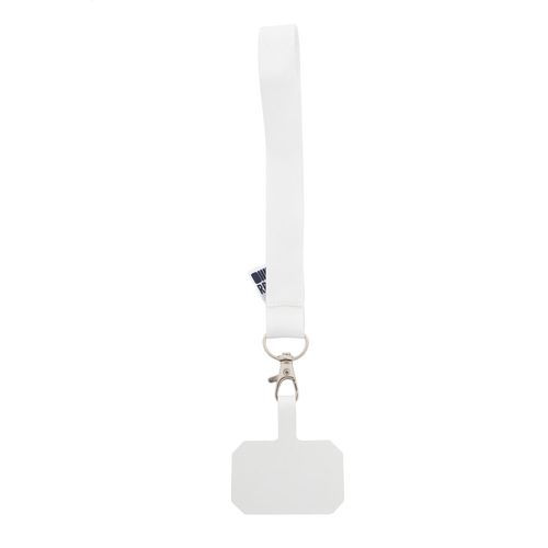 Custom made, RPET mobile holder wrist strap with metal carabiner and full colour printed phone insert in tearproof paper. With sublimation printed graphics on both sides. MOQ: 100 pcs.