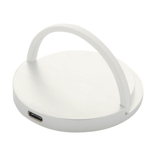 Magnetic wireless fast charger (15W) with mobile holder ring in recycled aluminium and recycled ABS plastic housing. Compatible with iPhone® 12 or newer. Including USB-C charger cable.