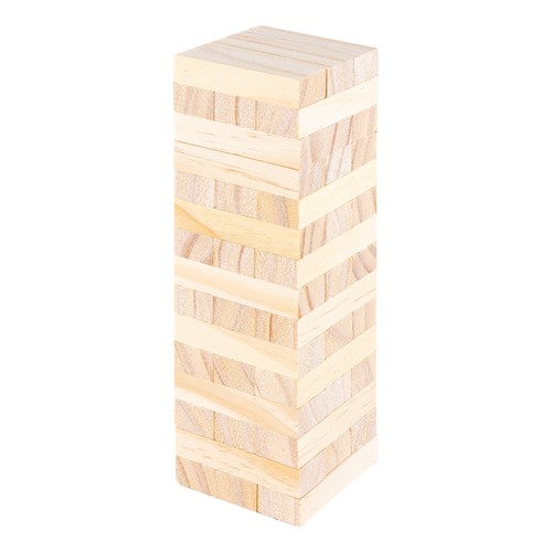 Skill game of 45 wooden pieces, presented in a cotton bag.
