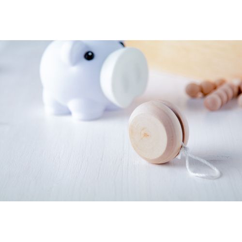 Natural wooden yo-yo with white cotton line.