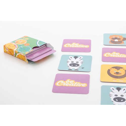 Paper memory game with thematic motives in custom paper box. With 24 tiles (55x55 mm). Price includes full colour print on backside of all tiles and a full colour printed box. MOQ: 100 pcs.
