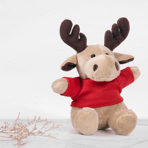 Xmas cuddly reindeer with coloured T-Shirt with wide space for printing.