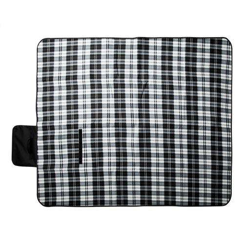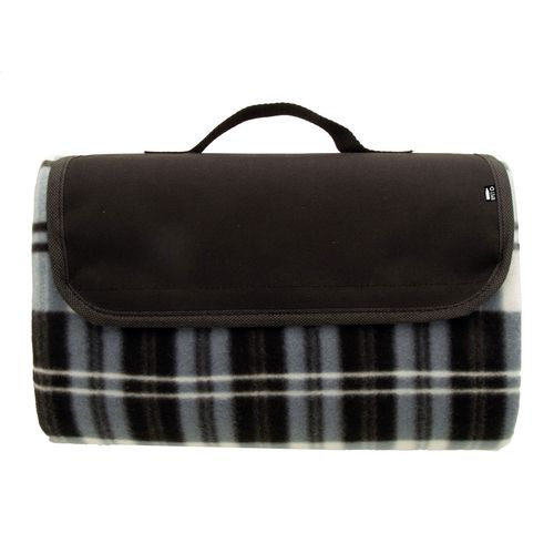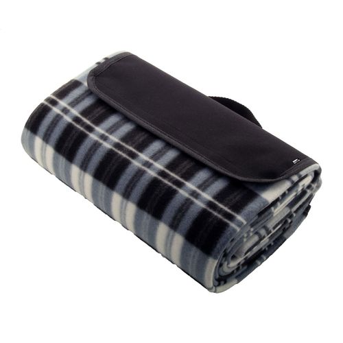 Foldable RPET polar fleece picnic blanket with water resistant coated back side and handle. RPET polyester, 160 g/m².