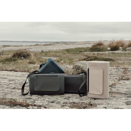 Head outdoors and bring the Baltimore picnic blanket with you. The blanket features a soft fleece surface for maximum comfort and a water-resistant PEVA backing that protects against moisture and cold. Equipped with a long handle for easy and comfortable carrying and a practical front zip pocket for keys, phone or other essentials. Certified by RCS (Recycled Claim Standard), RCS certification guarantees that the entire supply chain of recycled materials is certified. The total recycled content is based on the overall product weight. This product contains 47% RCS certified recycled polyester.
