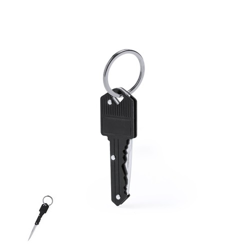 Unique key-shaped knife made of Aluminium and stainless steel. With key ring and folding blade. Individually presented in a kraft box.
