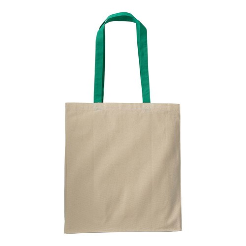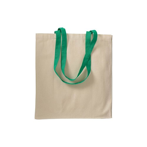 220 g/m2 natural cotton shopping bag with coloured long handles and gusset