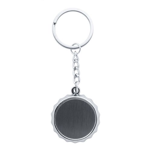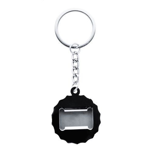 Bottle cap shaped metal keyring with bottle opener. In black gift box. Ideal for epoxy dome printing.