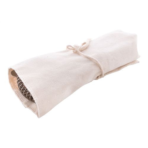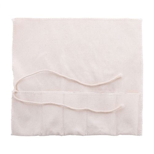 5 pc cocktail set in practical roll-up cotton pouch. Including: stainless steel jigger, strainer and bar spoon, wooden handle corkscrew and wooden muddler.