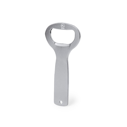Recycled Aluminium bottle opener in a variety of bright colours. With die-cut handle for hanging and specially designed for laser branding. Including the Recycled aluminiu mlogo in the central part and is available in a wide range of colours. Presented in a Recycled paper box.Recycled Aluminium is a material with almost infinite recycling possibilities, keeping its original properties and consuming less energy during this process..GRS Certification (Global Recycled Standard), which guarantees the recycled origin of the material used to manufacture the product.