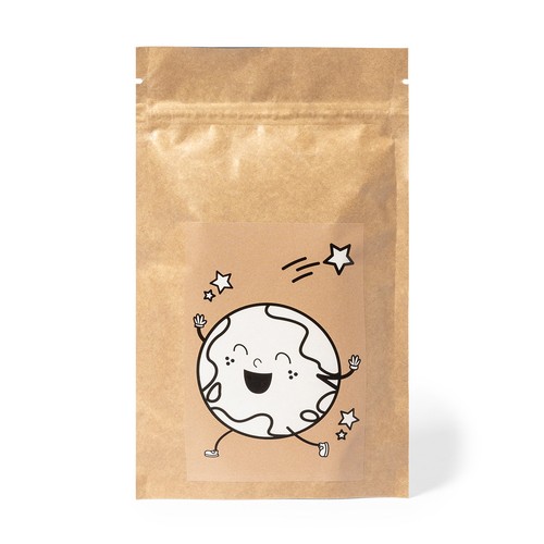 Nature line pot with nasturtium seeds. Presented in a recycled paper, design envelope. Including 6 crayons for coloring inside a recycled cardboard box. An ecological gadget combining the care for the environment with the fun of coloring.