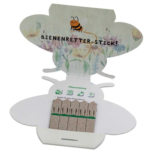Spring and summer greetings or just say thank you from the heart! There are many occasions for a promotional greeting. With the seed sticks, you can have a surprise effect: Because in the flat little paper letters, there are no matches, but nice advertising greetings, which are perfect as mailing items thanks to their flat shape and low weight. The seeds are applied to five small paper sticks. When a stick is placed in soil and watered, a small plant will quickly sprout. The card itself can be customised on four sides. The paper is completely compostable and once again supports the green advertising idea. A planting guide completes this promotional item.