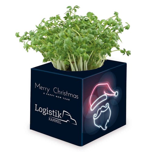 The secret of the flyweight is the waterproof cardboard cup inside. It contains a compost pellet as soil and a seed variety of your choice. The five sides of the surrounding cardboard cube, which can be completely customised, offer plenty of space for the advertising message. The planting instructions are on the bottom.