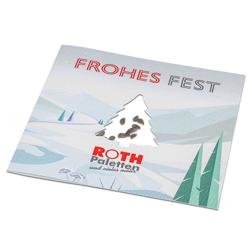 The classic Christmas symbol is used twice in this product: The flat give-away and mailing product contains spruce seeds, which arouse the recipient's curiosity through a window in the shape of a fir tree. Both sides of the square card in the practical format can be individually designed and printed and are also suitable for indirect mailing. It is a lot of fun to convey your Christmas wishes to the customer on this large advertising space.