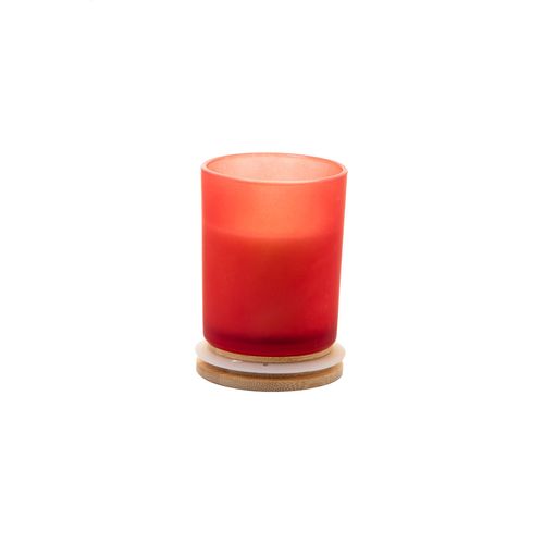 Scented plant-based wax candle in frosted glass holder with bamboo lid. With 120 grams of wax. In kraft paper box.