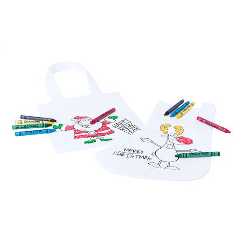 Non-woven, colouring Christmas stocking with 5 crayons, 80 g/m².
