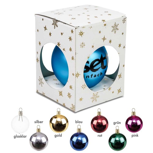 Is there anything nicer than when the candlelight is reflected in a glass ball? The shapely, hand blown and hand decorated glass balls are made in the Czech Republic and are individually printed from 250 pieces. The one colour print is done in a combination of screen printing and handcraft applied to the glass ball. An aluminium eyelet is attached to hang up the 8 cm ball.