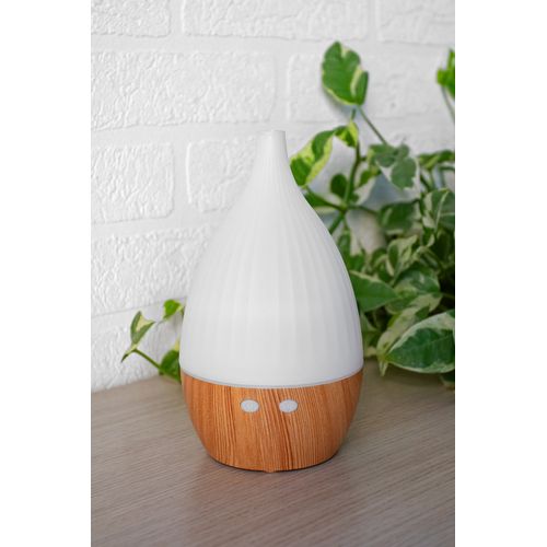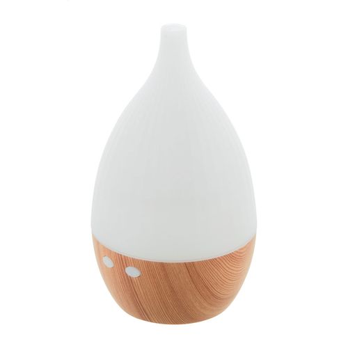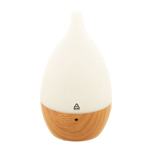 Recycled PP plastic desk humidifier with wooden pattern and multicolour LED light. Including USB charger cable. Tank capacity: 120 ml.