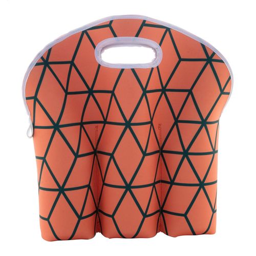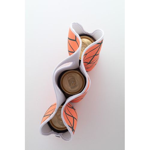 Custom made, RPET neoprene beer holder bag with handles. With all over sublimation printed graphics. For 3 cans or bottles. MOQ: 25 pcs.