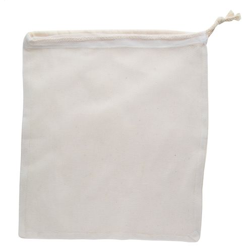 Reusable cotton produce bag with polyester mesh front and drawstring closure, 95 g/m².