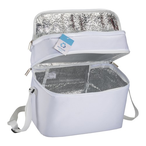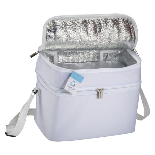 600d R-pet (330 g/m2) cooler bag with silver interior (2mMm EPE alu) and double zipped compartment