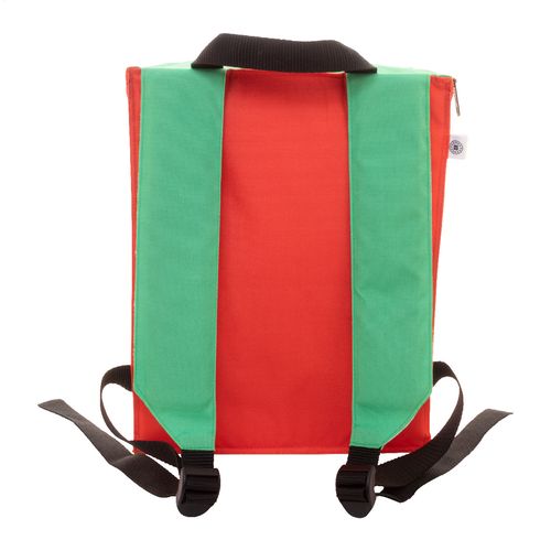 Custom made, zipped cooler backpack in 600D RPET polyester with aluminium padding and padded shoulder straps. With all over sublimation printed graphics and distinctive RPET label. MOQ: 25 pcs.