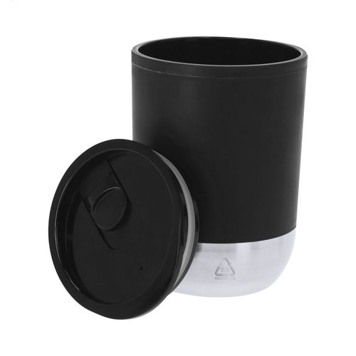 Double-wall, PP plastic insulated thermo cup with recycled stainless steel base and drinking lid. 300 ml.