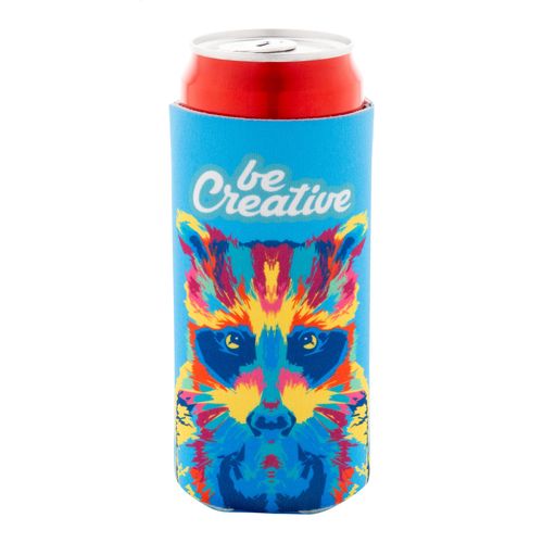 Custom made, RPET neoprene cooler cover for 0,33 L sleek-type aluminium can. With all over sublimation printed graphics. MOQ: 50 pcs.