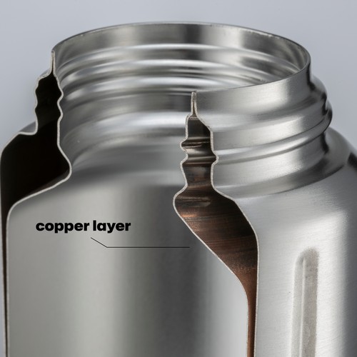 18/8 stainless steel, copper, copper layer, polypropylene, powder coating