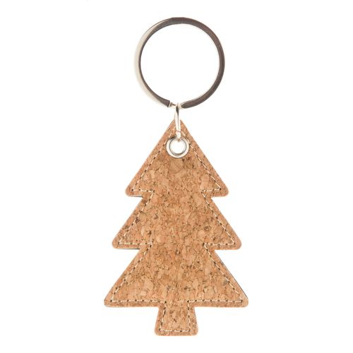 Christmas tree shaped natural cork and PU leather keyring with metal ring.