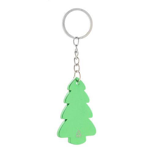 Christmas tree shaped recycled aluminium keyring with metal ring.