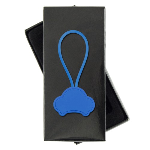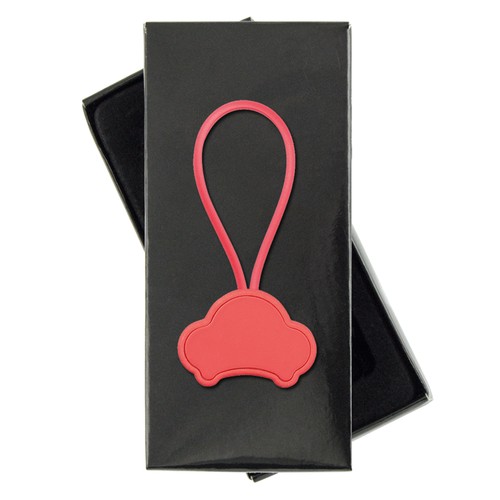 Aluminum car shaped Keychain. Edge finishing and tow silicone for keys. Presented in black cardboard box.