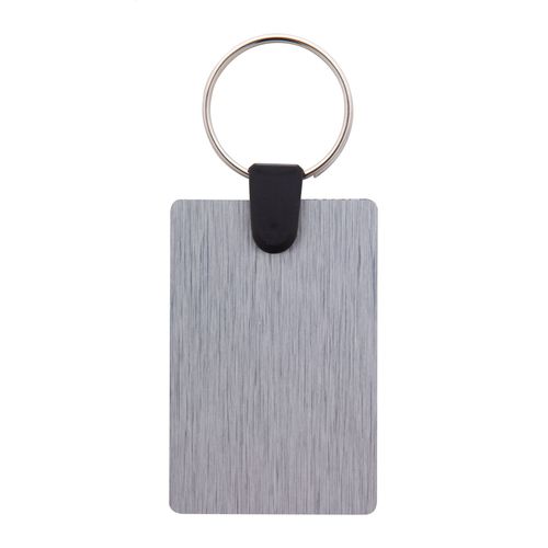 Rectangle shaped, brushed aluminium composite keyring with full colour printing. Price includes UV LED printing on one side. MOQ: 100 pcs.