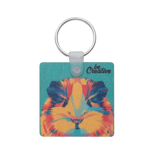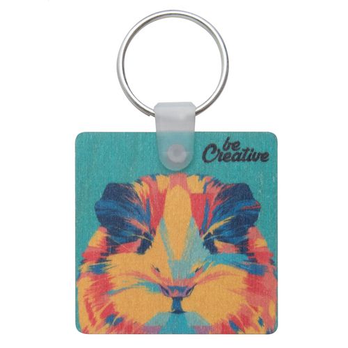 Square shaped, laminated birch wood keyring with full colour printing. Price includes UV LED printing on one side. MOQ: 200 pcs.