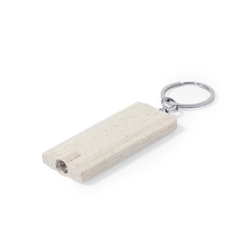 Wheat Straw and ABS keychain torch. 1 LED and battery powered (button cells included). Wheat Straw logo and presented in an individual recycled bag.Made from vegetal elements to promote the use of natural raw materials and reduce pollutant emissions.