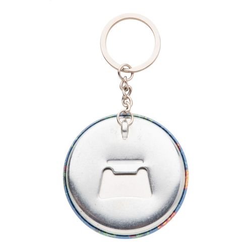 Large pin button bottle opener keyring with custom full colour paper insert. Price includes digital printing. MOQ: 100 pcs.