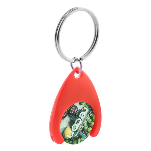 Plastic keyring with shopping trolley coin and metal ring. Coin size: ø24×2 mm.