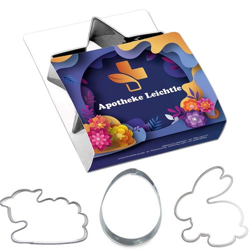 The popular baking-shapes in an advantageous cardboard box will spark a lot of joy. Due to the renewable raw material of the packaging and the dishwasher-safe baking-shape made of stainless steel,it is along lasting product. The advertising message can be optimally placed by printing on both sides and inside. A customer greeting, the logo and, for example, a baking recipe are a nice combination for printing. The best thing is: the recipients recognise what they get. The baking-shapes are available in many variations and shapes.