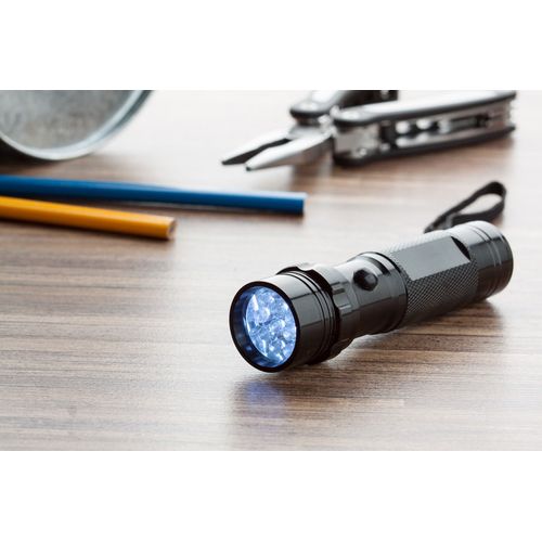 Aluminium, 14 LED flashlight in black gift box. With 3 AAA batteries.