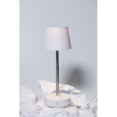 Telescopic bar table lamp in recycled ABS with 12 LEDs, adjustable brightness and 1200 mAh USB rechargeable battery. Including USB charging cable.