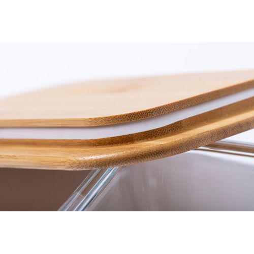 Glass lunch box with natural bamboo lid. With bamboo cutlery set (knife, fork and spoon) and elastic strap, 500 ml.