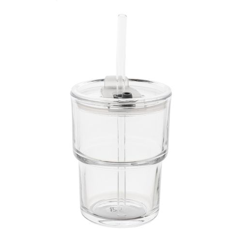 Glass travel cup with plastic drinking lid and glass straw. 400 ml.