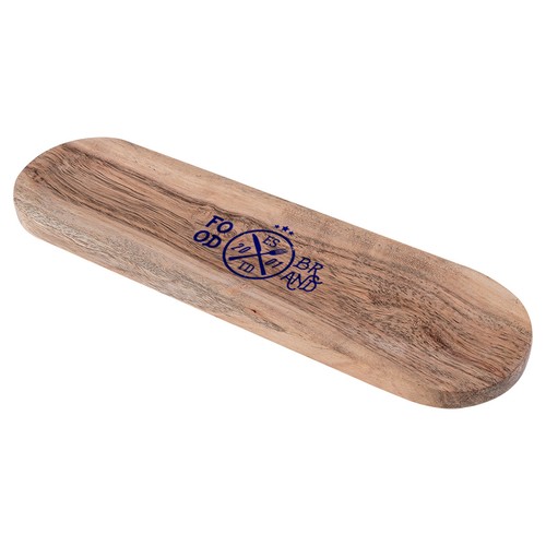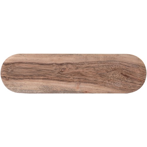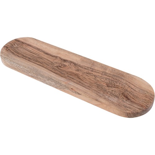 Long tray made of acacia wood. Wash by hand and do no use in microwave. It is recommended to apply olive oil before setting food.