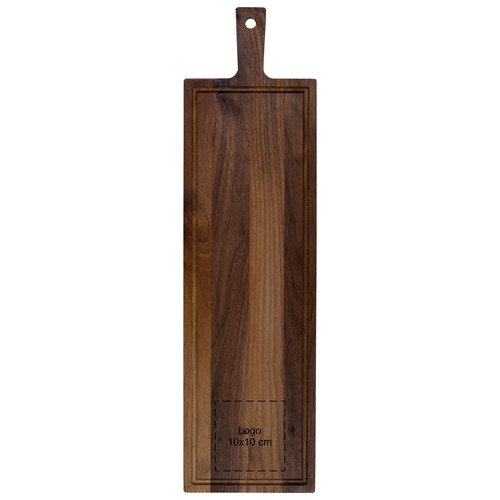 The walnut serving board with handle and juice groove is a luxurious and stylish way to serve food. With a 10 cm handle, this board is easy to carry and move, making it an ideal choice for home use, restaurants, or catering events.