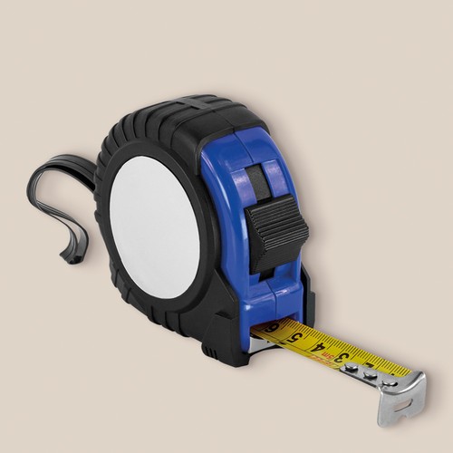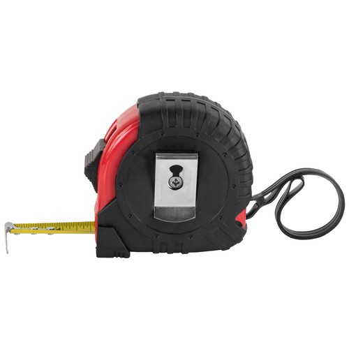 Abs 5 meters tape, with rubber finish in black and detail in color. It includes a clip to hang it.