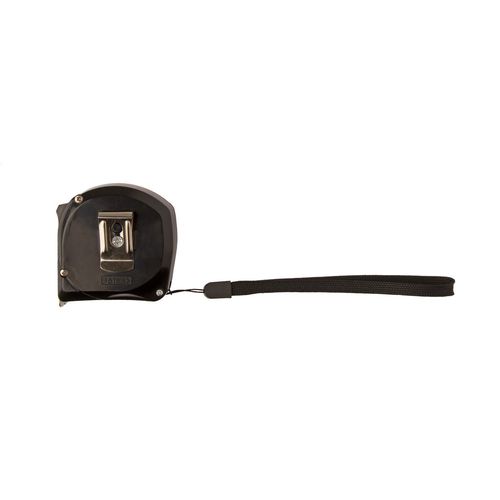 Plastic and bamboo tape measure with lock function, metal clip and hand strap, 5 m.