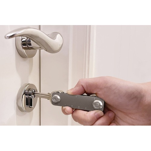 This innovative key holder is designed to keep your keys organized,silent,and easy to carry. Crafted from hardened martensitic stainless steel 420,'The Keyper' is not only robust and durable but also encompasses 6 functions including tightening bolts,measuring (cm and inch),a phone stand,and a bottle opener. It's an essential gadget for daily life,ensuring you're always prepared for various tasks while eliminating the bulk and noise of traditional keychains in your pocket.