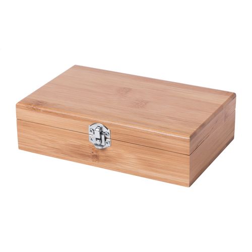 Bamboo wine set with corkscrew, drop stopper and plug in bamboo box.